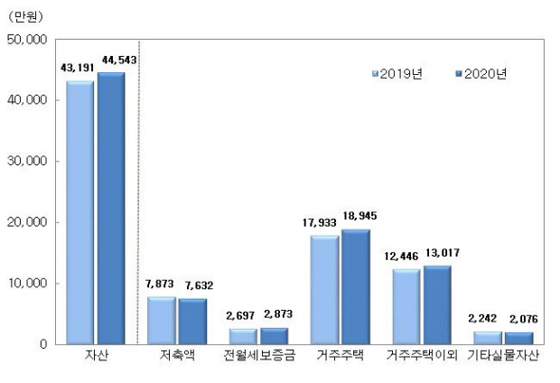 지난 3월 말 기준 가구의 평균 자산은 4억4543만원으로 1년 전보다 3.1% 늘었다.