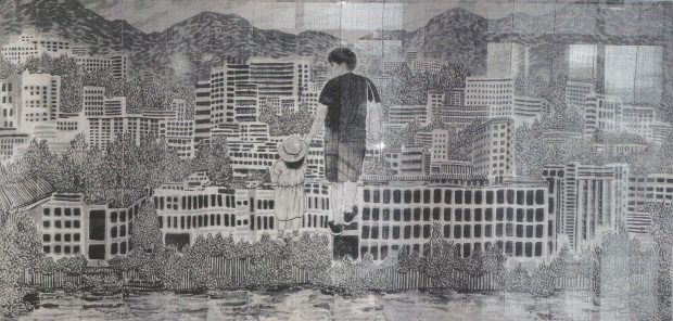 그밖에 정승원 작가는 화려한 색감과 유머스러운 장면이 눈길을 끄는 판화 작품 ‘양동시장’을, 하루 K 작가는 평화로운 광주의 모습을 모시 천에 수묵으로 작업한 ‘행복한 미래’를 전시중이다.
