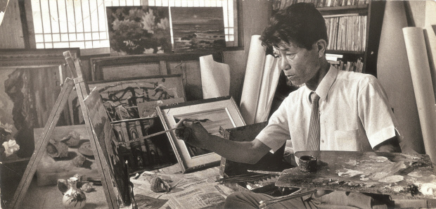 | 작업중인 양수아 화백 |