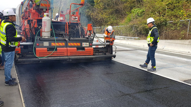 ‘고내구성 저소음 배수성 포장 공법’은 공극이 많은 아스팔트포장으로 우천 시 빗물을 포장체 내부로 배출해 미끄럼 사고를 방지, 차량 소음까지 흡수해 주행 안전성은 물론, 소음저감 효과까지 우수한 포장이다. 고등급 아스팔트를 사용해 내구성도 향상시켰다. 비가 내릴 때 빗물을 포장 내부로 배수시켜 수막현상을 감소하는 등 미끄럼 사고를 방지해주고, 주행으로 발생하는 소음을 포장 내부의 공극을 통해 소음을 흡수해 3dB 이상 감소시킨다.