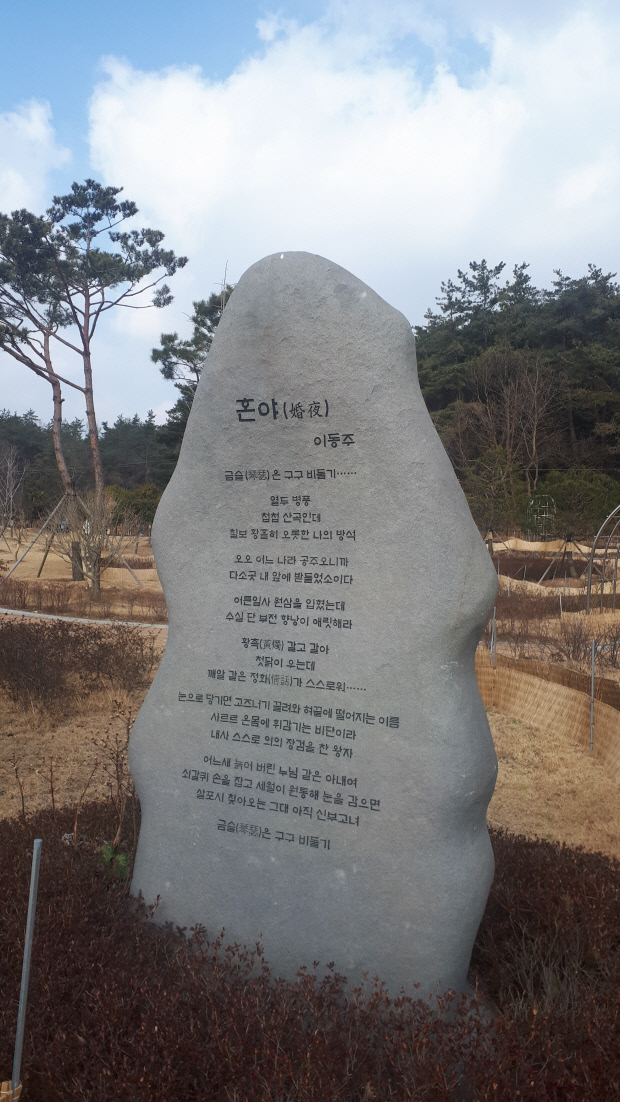 | 이동주의 대표작 ‘혼야(婚夜)’ 시비. |