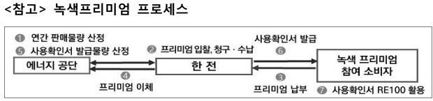 녹색프리미엄 납부액에 해당하는 ‘재생에너지 사용 확인서’를 발급받아 RE100 인증에 활용할 수 있다.