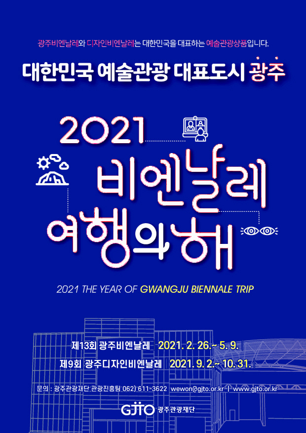 재단은 먼저 ‘2021 비엔날레 여행의 해’ 홍보를 위해 재단 공식 SNS 채널(인스타그램, 페이스북, 블로그)을 비롯해 한국관광공사 ‘대한민국 구석구석’, 네이버 및 다음 포털사이트 등을 활용해 ‘비엔날레 여행’을 독려하고 있다.