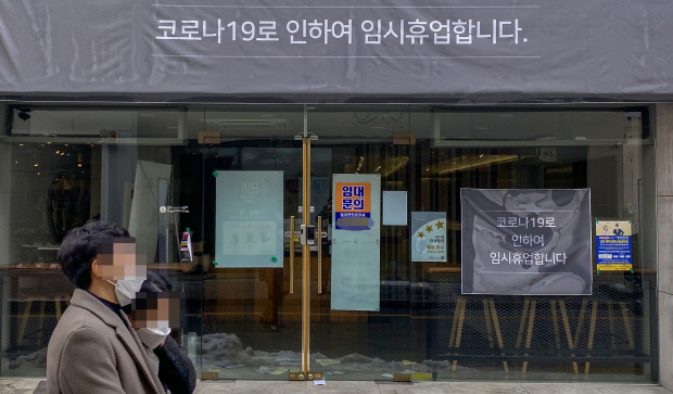 코로나 19 확진자가 발생한지 20일로 1년이 됐다. 집 밖으로 나가거나 타인과의 접촉을 최대한 줄이기 위해 배달중심으로 외식산업이 바뀌는 등 시민들의 일상도 크게 변했다. 19일 광주 동구 충장로의 한 매장에 임시휴업을 알리는 현수막이 내걸려 있는 모습. /김진수 기자 jeans@kwangju.co.kr