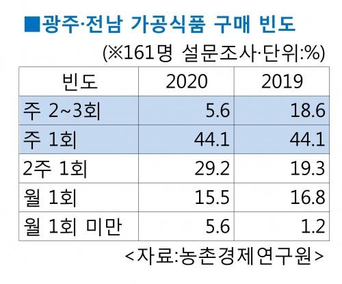 이 같은 내용은 농림축산식품부와 한국농촌경제연구원이 지난해 7∼9월 광주·전남 161명을 대상으로 시행한 ‘2020년 가공식품 소비자 태도 조사’ 결과에 담겼다.