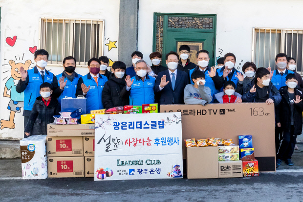 광주은행 송종욱 은행장과 우수 중소기업 CEO 모임인 ‘광은리더스클럽’(회장 김홍균 남선산업 회장)은 4일 광주 지역아동센터 2곳을 찾아 성금과 가전제품, 학용품 등을 전달했다.<광주은행 제공>