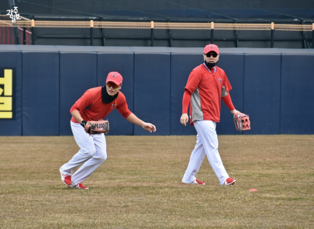 오선우와 이성우도 따로 외야 수비 훈련을 진행했습니다.