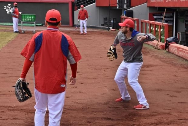 5일에는 이번 캠프 들어 처음 그라운드에서 수비훈련이 진행됐습니다.