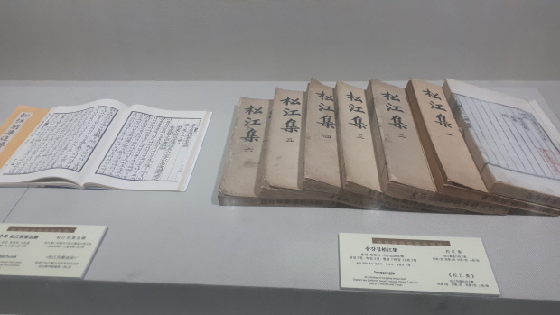 송강 정철의 자료도 볼 수 있다. 가사문학의 대가인 송강의 자료는 그의 삶이 겹쳐져 다소 불편한 느낌마저 환기한다. 정여립의 모반 사건으로 반대파를 축출하는데 앞장섰던 그는 오늘의 우리에게 많은 생각거리를 던져준다. 그러나, 이곳에서 확인할 수 있는 것은 그의 탁월한 시적 역량이다. 그는 천상 시인이었다. 정치가 이전에, 문장을 음미했던 시인이었던 것이다. 시어나 정경의 묘사가 탁월해 감히 범접하지 못할 지경이다.