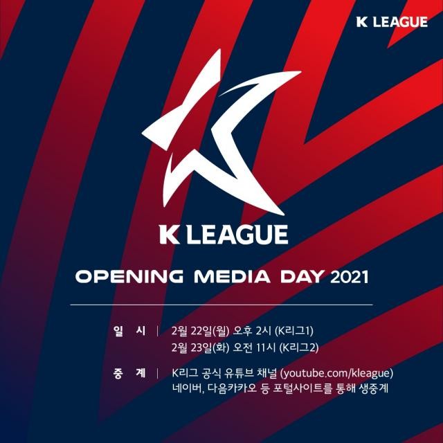 오는 27일 2021시즌 K리그 개막을 앞두고 K리그 22개 구단 감독과 대표 선수들이 참여하는 개막 미디어데이가 22·23일 이틀간 K리그1, 2로 나누어 열린다.