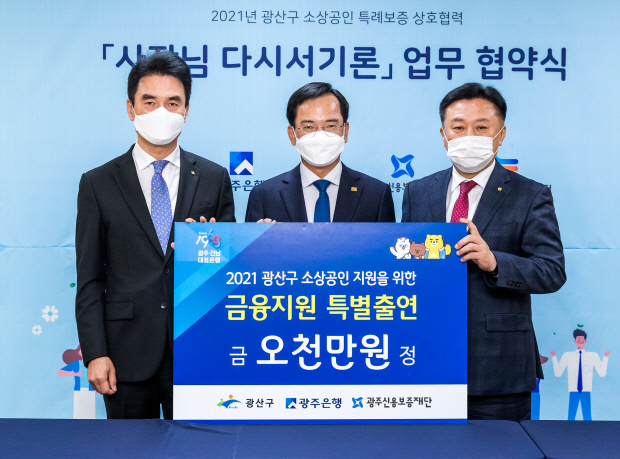 광주은행(은행장 송종욱)은 15일 광주 광산구청에서 ‘2021 광산구 소상공인 특례보증 업무협약’을 맺었다고 이날 밝혔다.