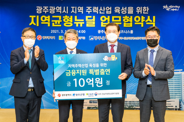 광주은행(은행장 송종욱)은 18일 광주시청에서 광주시, 기술보증기금, 광주·전남지방중소벤처기업청과 ‘광주시 지역주력산업 육성을 위한 지역균형뉴딜 업무협약’을 맺었다고 이날 밝혔다.