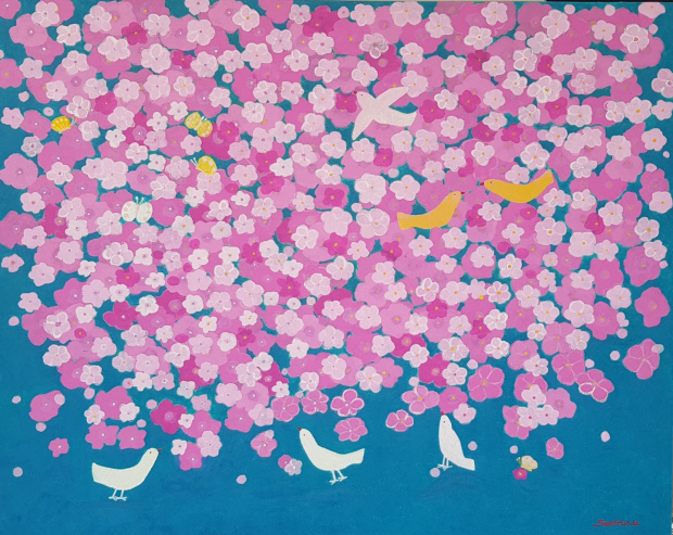 꽃과 나비, 화폭에 화사한 봄이 한가득이다.