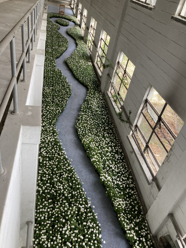 폐쇄된, 오래된 병원 복도에 아름다운 꽃길이 만들어졌다. 5000포기 데이지꽃으로 꾸며진 길이다. 열린 창으로 비치는 햇살과 불어오는 바람에 조금씩 흔들리는 데이지꽃의 모습이 인상적이다. 옛 국군광주병원 현장에 설치된 문선희 작가의 작품 ‘묻고, 묻지 못한 이야기_목소리’다. 관람객들은 오는 4월1일부터 꽃길 사이를 걸으며 전시를 관람할 터다. 어디선가 들려오는 초등학생들의 목소리에 귀 기울이면서.