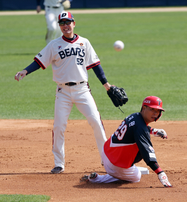 두산의 새 외국인 선수 로켓을 상대한 KIA가 최원준과 김선빈의 연속 안타로 1회부터 무사 1·2루의 기회를 잡았다. 하지만 터커의 좌익수 플라이에 이어 최형우의 타구가 유격수 앞으로 향하면서 6-4-3 병살타가 기록됐다.