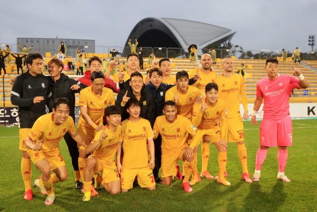 김호영 감독이 이끄는 광주는 이날 안방에서 열린 인천유나이티드와의 K리그1 2021 7라운드 홈경기에서 엄지성의 동점골과 이희균의 ‘극장골’로 2-1 승리를 거뒀다.