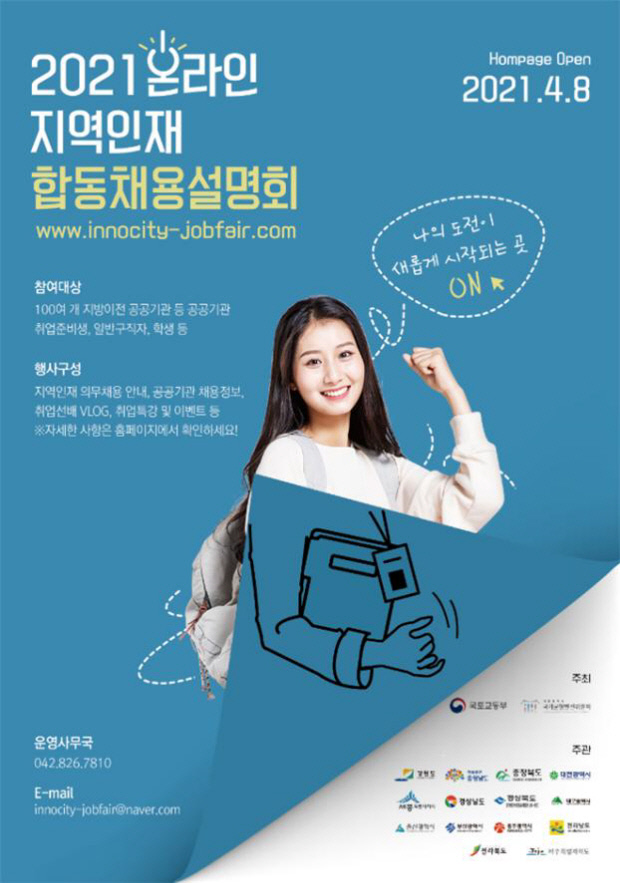 국토교통부와 국가균형발전위원회는 오는 8일부터 5월26일까지 7주간 ‘2021 온라인 지역인재 합동채용설명회’를 연다고 6일 밝혔다.