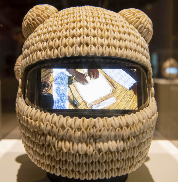 | 헬멧과 조개껍질, 휴대폰으로 작업한 에모 데 메데이로스 작품 ‘하이퍼 리시버’ |