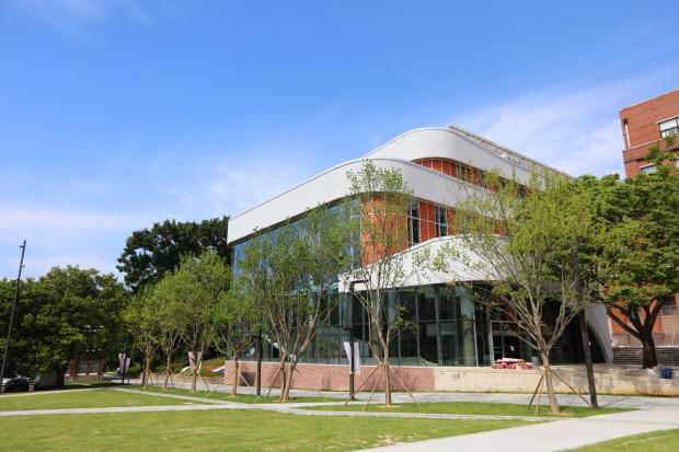 앞으로는 푸른 수목의 동산이 펼쳐져 있고 뒤로는 붉은 벽돌의 인문대가 보인다. 주변의 풍경 속에 맞춤한 듯 들어앉은 건물은 투명한 통유리와 유연한 곡선이 맞물려 세련되면서도 아늑한 분위기를 발한다. 봄철, 비록 코로나로 많은 학생들의 모습은 볼 수 없지만 캠퍼스는 그렇게 싱그러움과 낭만이 가득하다.