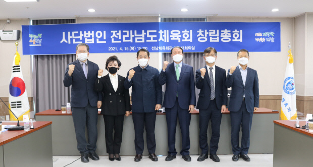 전남도체육회는 15일 전남체육회관에서 김재무 회장, 이완식 법인설립준비위원회 위원장 등 위원 5명이 참석한 가운데 사단법인 전라남도체육회 창립 총회를 개최했다. <사진>