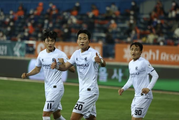 광주가 20일 춘천송암스포츠타운에서 열린 강원FC와 하나원큐 K리그1 2021 11라운드 원정 경기에서 1-0 승리를 거뒀다.