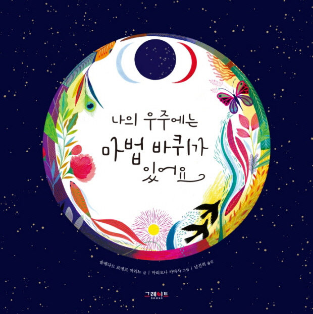 ▲나의 우주에는 마법 바퀴가 있어요=자연 곳곳에서 나타나는 순환 과정을 아름다운 화풍과 서정적인 이야기로 표현했다. 겨울이 가면 봄이 오고, 밤이 지나면 새날이 밝는다. 구름은 비로 바뀌어 내리고, 애벌레는 나비로 자라 날아오른다. 커다란 마법 바퀴가 돌아가듯이 자연은 모습을 바꾸며 다시 시작하며 자연의 일부인 ‘나’ 또한 마법 바퀴를 따라 순환한다는 사실을 전한다.