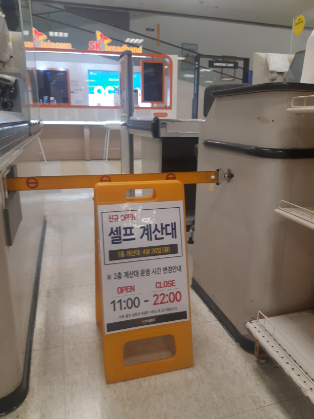 이마트 광산점은 1층 계산대에 6대 가량을 설치하고, 2층 계산대를 기존 밤 11까지에서 1시간 단축해 운영할 방침이다.