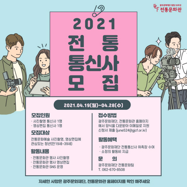 광주문화재단 전통문화관은 다양한 행사 등을 소개할 ‘전통통신사’를 28일까지 모집한다.