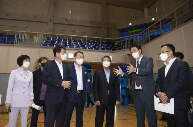 이들은 매튜 장 대표에게 배구선수단이 홈구장으로 사용하게될 염주체육관의 강점을 소개했다.광주시는 지난 2015년 세계수영대회 경기장으로 활용했던 염주체육관을 실내스포츠 경기장으로 바꿨다. 종전에는 경기장과 관중석이 비교적 멀어 관람에 한계가 있었으나, 리모델링을 통해 접고 펼 수 있는 가변 관람석을 설치했다. 1000여명에 달하는 관중들이 배구 코트와 가까운 곳에서 경기를 만끽할 수 있다.