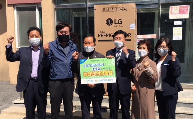 농협자산관리회사 전남서부지사와 무안 삼향농협은 최근 무안군 삼향읍 농업인 무더위 쉼터를 찾아 ‘농업인 희망동행’ 행사를 열고 냉장고를 전달했다.<농협 전남본부 제공>