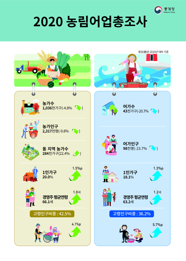 통계청이 지난 27일 발표한 ‘2020년 농림어업총조사 결과(잠정)’에 따르면 지난해 전남 농가 인구는 27만9094명으로, 직전 조사인 2015년(31만8848명) 보다 12.5%(-3만9754명) 감소했다.