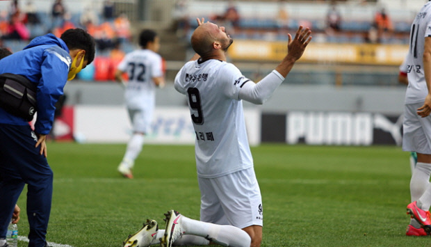 광주FC 주포 … 집중 견제 받고 판전에 땅 치기도