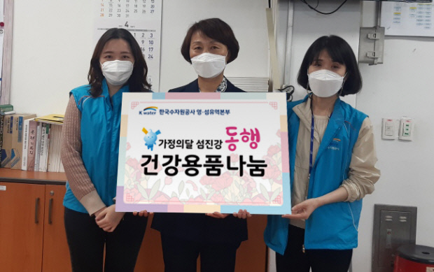 한국수자원공사 영·섬유역본부(본부장 양진식)는 가정의 달을 맞아 ‘섬진강 동행’ 행사의 하나로 다음달 4일까지 지난해 수해지역 경로당과 지역아동센터 등에 총 1900만원 상당 건강용품과 간식, 학습교재를 전달한다.<수자원공사 영·섬본부 제공>