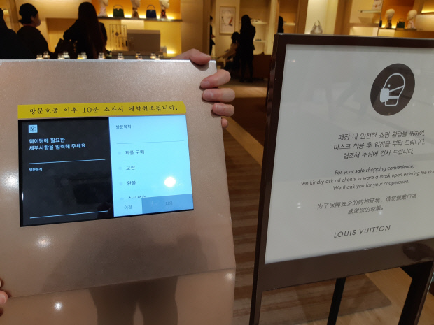 이들 브랜드 매장은 백화점 개점 시간부터 구매자들이 몰리는 경우가 많아 고객이 직접 휴대전화 번호와 방문 목적 등을 등록한 후 기다려야 이용할 수 있다. 개점하고 10분이 지나 등록하니 루이비통 매장은 27번, 디올은 23번 대기 번호를 받을 수 있었다. 이로부터 루이비통은 2시간 40분 뒤인 오후 1시 50분, 디올은 50여 분이 지난 정오께 입장할 수 있었다.