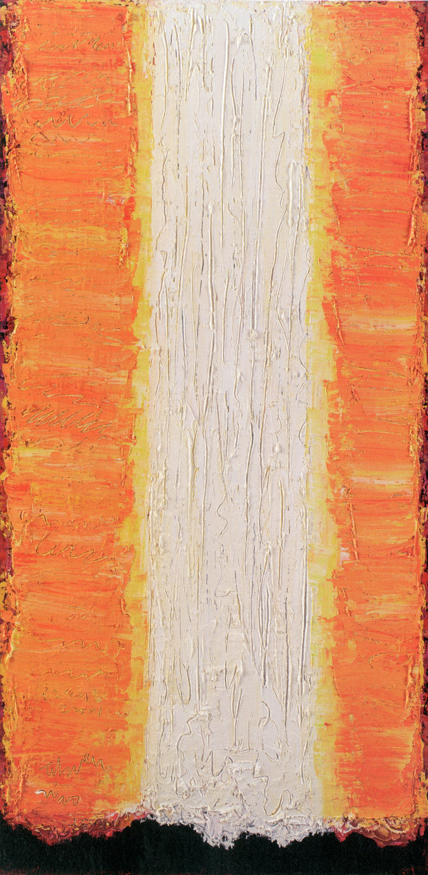 서양화가 송필용 작가의 이번 초대전 제목은 ‘거친 땅, 곧은 물줄기’다. 그의 40여년 화업을 오롯이 품고 있는 듯한 주제라는 생각은, 전시장에서 만나는 그림들을 보면 확실해진다. 직선으로 쏟아져 내리는 물줄기와 거칠고 생명력 넘치는 화면에서 발산되는 기운은 숨쉬는 대지의 또 다른 표현이기도 하다.