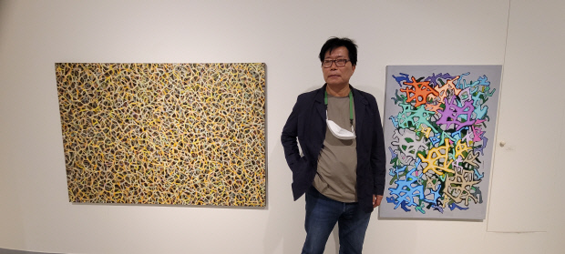 “예술가에게 가장 중요한 것은 창의성과 독창성이라고 생각해요. 문자추상은 제 오래된 작업 테마죠. 문자를 좀 더 돋보이게 하기도 하고 수많은 겹침을 통해 문자를 흐트러트리기도 하면서 작품들을 만들어나갑니다. 전시를 준비하고, 또 전시장에 머물면서 더 심도있는 작업을 펼쳐나가야겠다는 마음이 들었어요. 지금은 콜라주 작업을 시도해 보고 있어요. 또 캔버스 대신, 나무 등 좀 더 다양한 재료들도 활용해 보려합니다.”