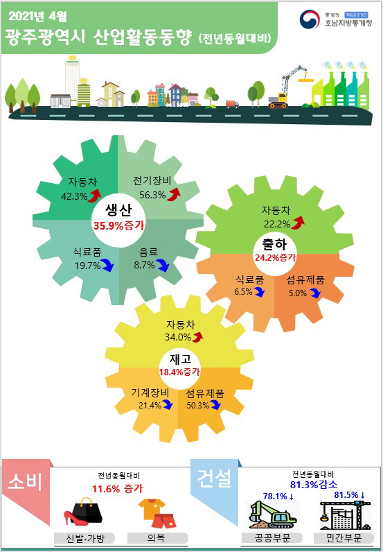 광주지역 출하와 재고는 전년 동월 대비 각 24.2%, 18.4% 증가했다.
