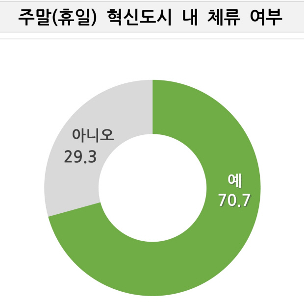 주말에 혁신도시에 머무는 주민 비중은 70%에 불과했다.
