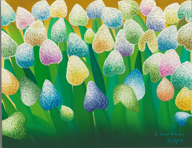 화폭에 가득 담긴 건 다양한 색감의 ‘파꽃’이다. 독특한 기법으로 유화 물감을 찍어 발라 완성한 꽃 한송이 한 송이는 푸른 줄기와 어우러져 독특한 화면을 만들어낸다.