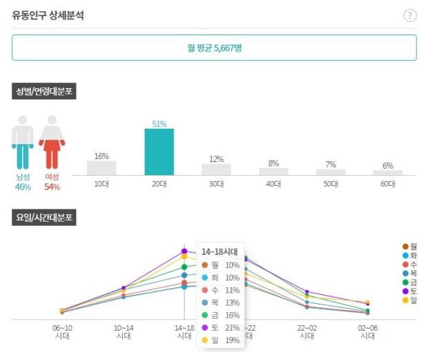상권별로 보면 충장로1가 월 유동인구는 지난해 4092명에서 올해 5667명으로, 38.5%(1575명) 급증했다.