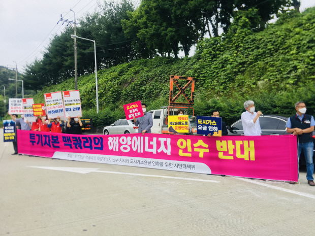 광주지역 9개 시민단체로 구성된 ‘투기자본 맥쿼리의 해양에너지 인수 저지와 도시가스요금 인하를 위한 시민대책위’는 이날 광주 순환도로 영업소에서 피켓 시위를 열고 16일 오전에는 광주시 관계자와 간담회를 열고 이 문제를 논의하기로 했다.