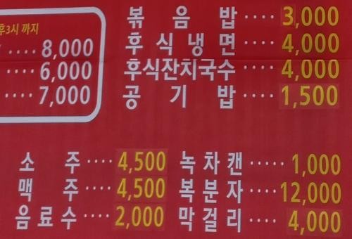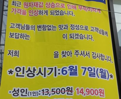 | 가격 인상을 알리는 광주시 광산구 한 음식점. |