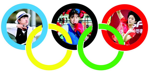 | 왼쪽부터 양궁 안산, 여자복싱 임애지, 배드민턴 안세영. |