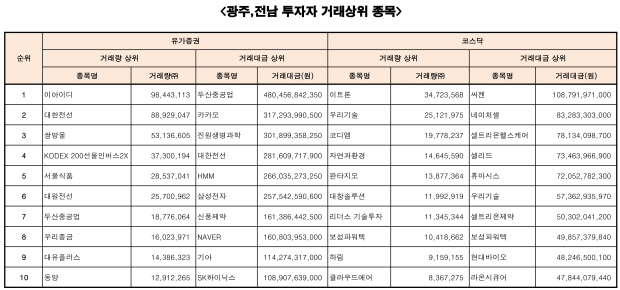 | ■6월 광주·전남 주식투자 동향.<한국거래소 광주사무소 제공> |