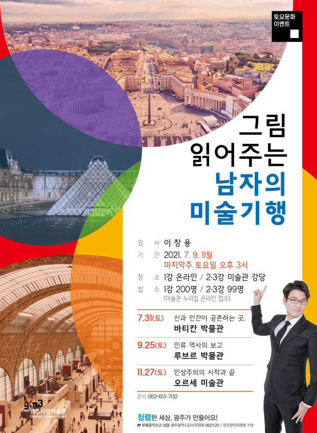 첫 강의는 ‘신과 인간이 공존하는 곳, 바티칸 박물관’을 주제로 열리며 ‘인류 역사의 보고 루브르 박물관’(9월 25일), ‘인상주의의 시작과 끝 오르세 미술관’(11월 27일) 등의 강좌가 이어진다.