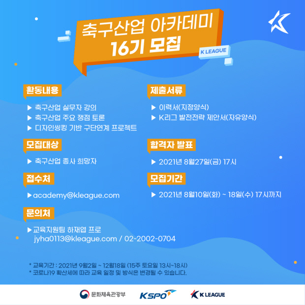 축구 현장에서 뛰고 싶다면? 16기 축구산업 아카데미!