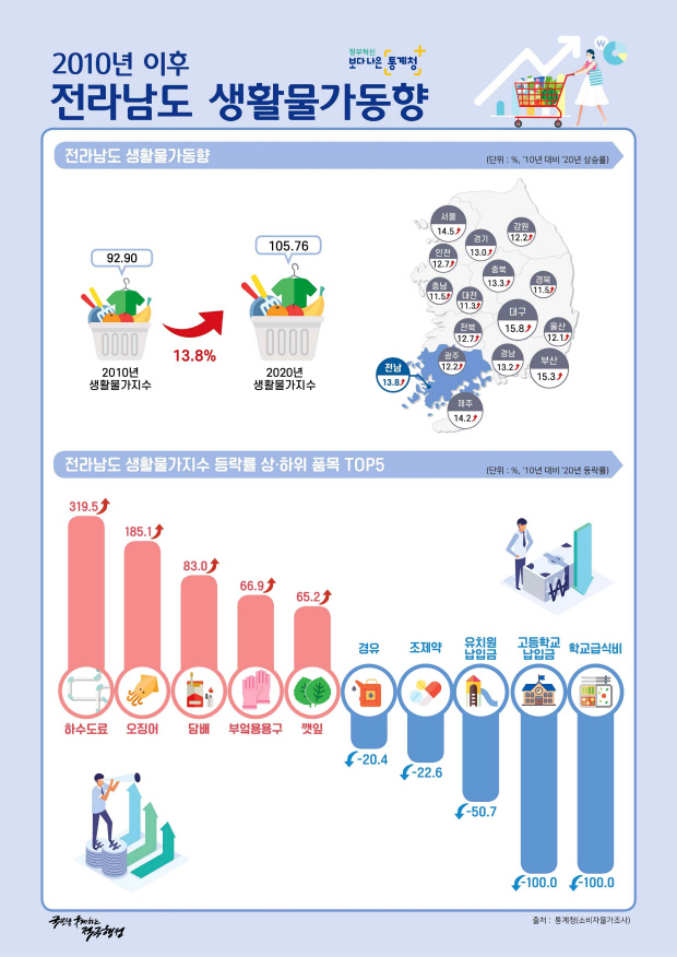 10일 호남지방통계청 목포사무소는 이 같은 내용을 담은 ‘2010년 이후 생활물가동향’ 조사 결과를 발표했다.