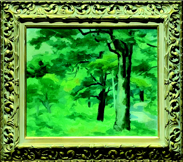 오지호 화백 작품은 5점이 나왔다. 해가 진 저녁 무렵 풍경을 담은 ‘항구풍경’, ‘설경’, ‘잔설’, ‘복사꽃 피는 풍경’ 등을 통해 작가의 다양한 화풍을 만날 수 있다. 특히 1970년 작 ‘풍경’은 광주시립미술관 전시 등에서 접했던 오 화백의 작품과 결이 달라 흥미롭다. 작가가 30대에 몰입했던 인상파 화풍이 그대로 남아 있는 작품은 짙은 녹음이 우거진 녹색 숲의 생동감과 푸르름이 그대로 전해지는 듯하다. 그밖에 임직순 화백의 작품으로는 원색의 화려한 색감이 돋보이는 ‘여인 좌상’을 만날 수 있다.