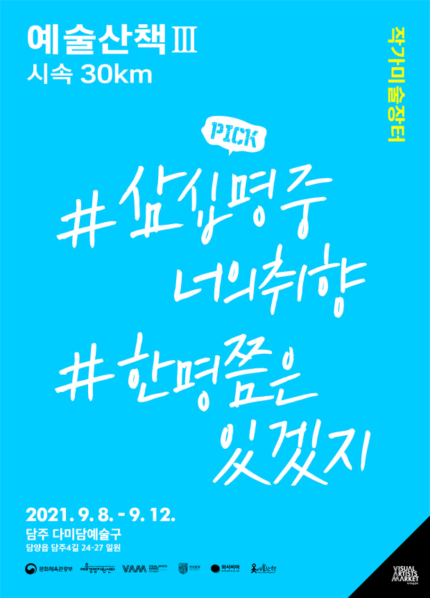 담양군과 예술기업 와사비아가 주최하고 예술산책 팀이 주관하는 직거래 작가 미술장터 ‘예술산책Ⅲ-시속30km’가 8일부터 12일까지 담양군 담주예술구(담양읍 담주4길 일대)에서 열린다.