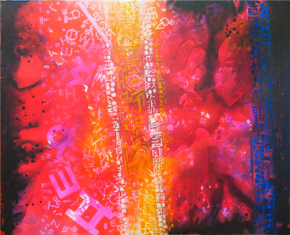 작품에 등장하는 문자나 기호적 요소들 그리고 한글의 자모, 영어의 알파벳은 우리 사회의 혼재된 양상과 혼돈의 모습을 보여주는 장치이기도 하다. 작가는 한국 자모의 균형과 연속성의 변화를 통해 시각적 효과를 극대화하고 각종 기호들이 모이면서 생기는 질서와 조화를 화면에 담아낸다